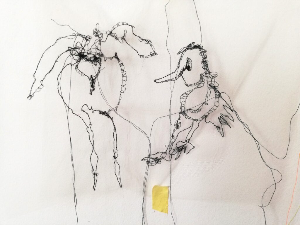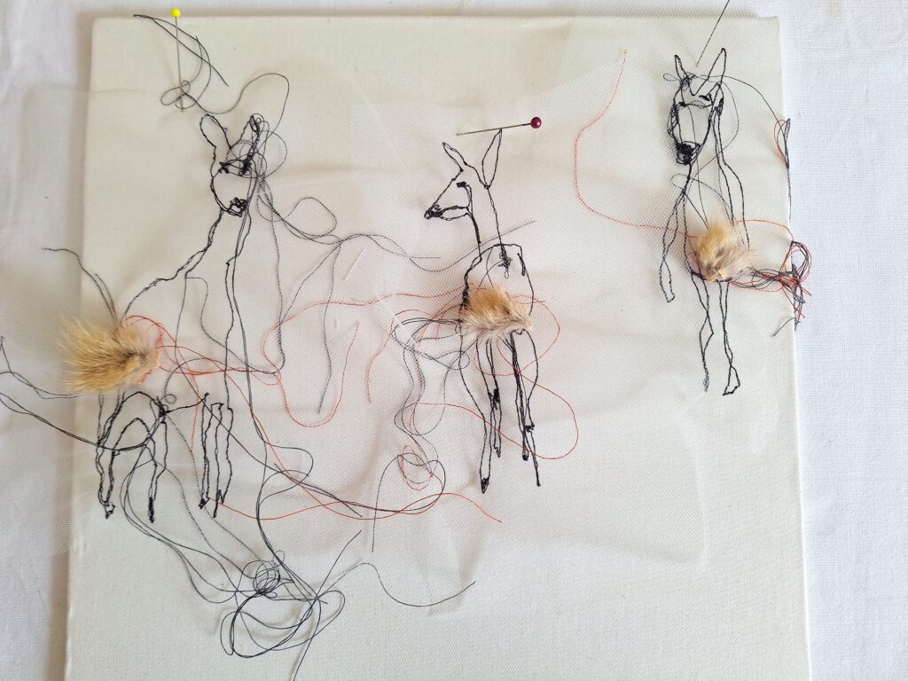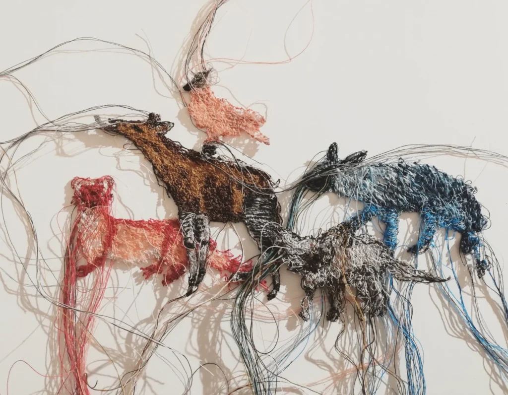 Diverse Textiltechniken und Materialien in unterschiedlichen Formaten